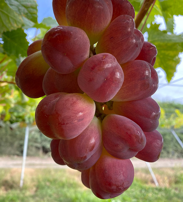 "The original large grape". Developed over fifty years ago, this is a large grape that has been beloved for many years. It is seedless, has large fruits, and the flesh is firm and juicy.